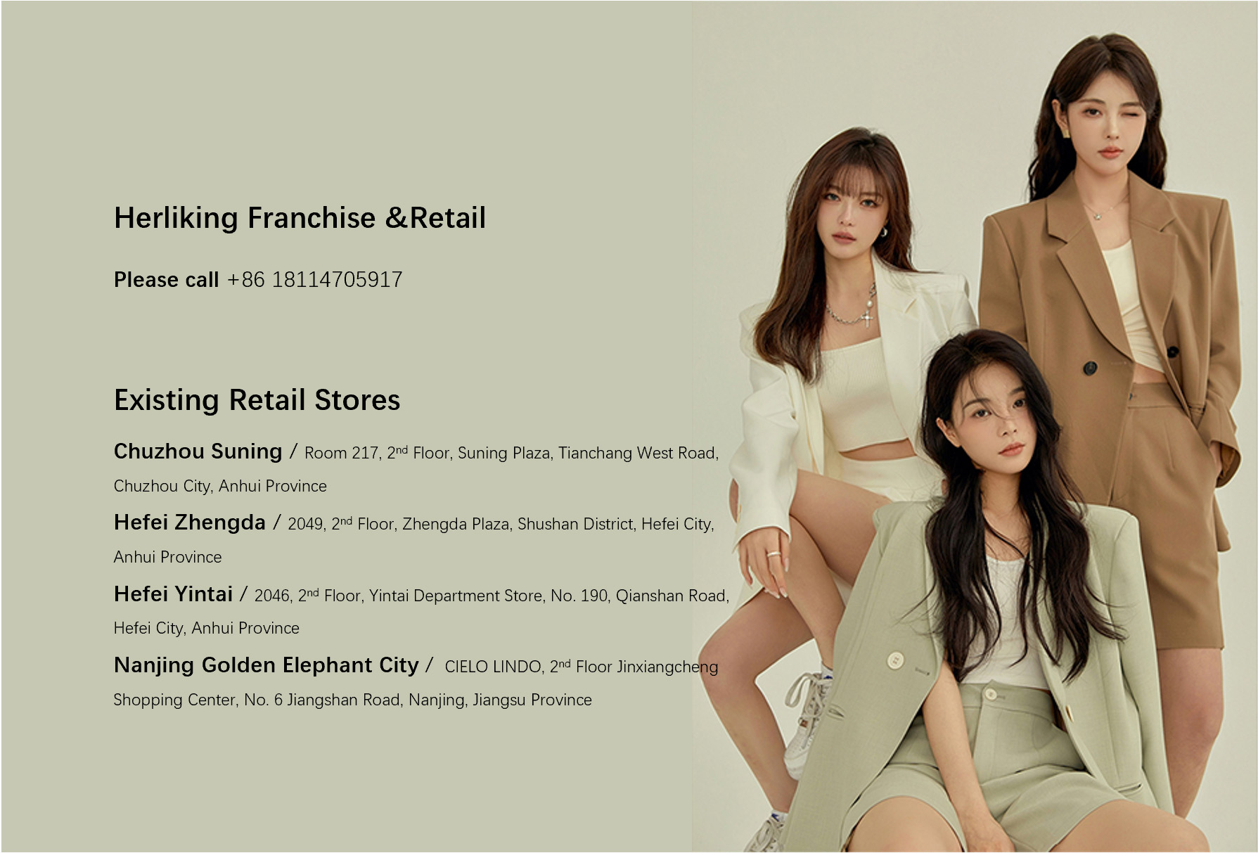 Our business covers style design, sample customization, product planning, brand strategy, order production, and fabric and Herliking franchise retail, providing a